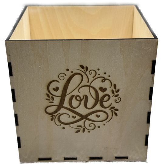 Laser-Engraved Wooden "Love" Flower Box – 5x5 Inches